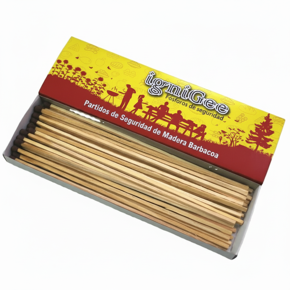 IGNIGEE Colorful Safety BBQ Cerillas de madera Papel y cartón en forma de palo con cera con logotipo impreso para uso doméstico
