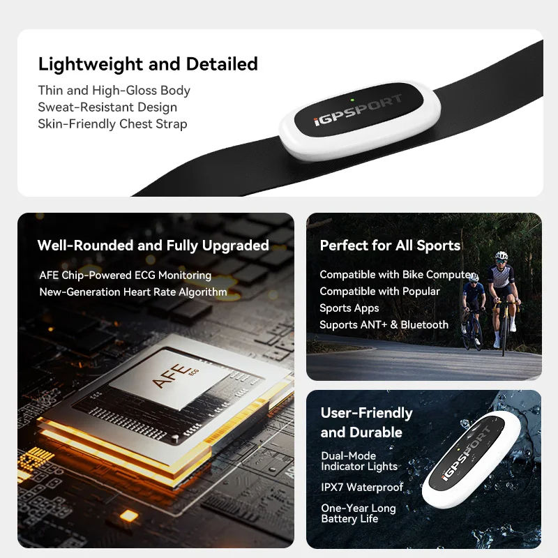 Sensor de Ritmo Cardíaco IGPSPORT HR50, Monitor de Frecuencia Cardíaca Inalámbrico para Ciclismo, Sensor de Salud y Fitness para Bicicleta, BLE ANT+ con Sensor de Pecho