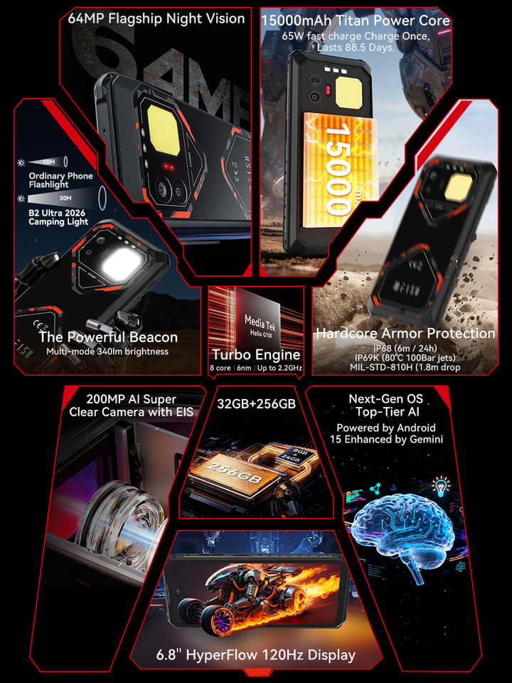 Teléfono Resistente IIIF150, 120Hz, MTK G100, NFC, 15000 mAh, Cámara de 200MP, IP69K, Android 15, 8+256GB, F150 B2 Ultra