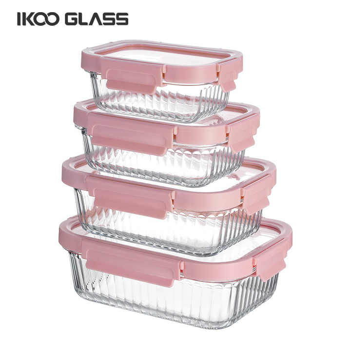 IKOO - Recipientes de Vidrio para Alimentos con Diseño Acanalado y Tapas, Loncheras de Vidrio
