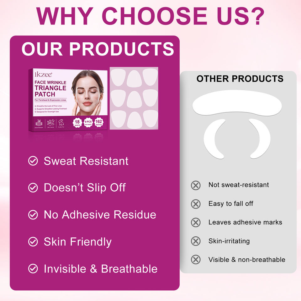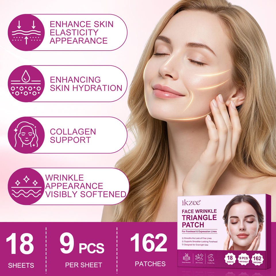 Parches Triangulares IKZEE 162 Unidades para Arrugas Faciales, Cuidado Nocturno de la Piel, Parches Reafirmantes No Invasivos para Frente y Líneas de Expresión