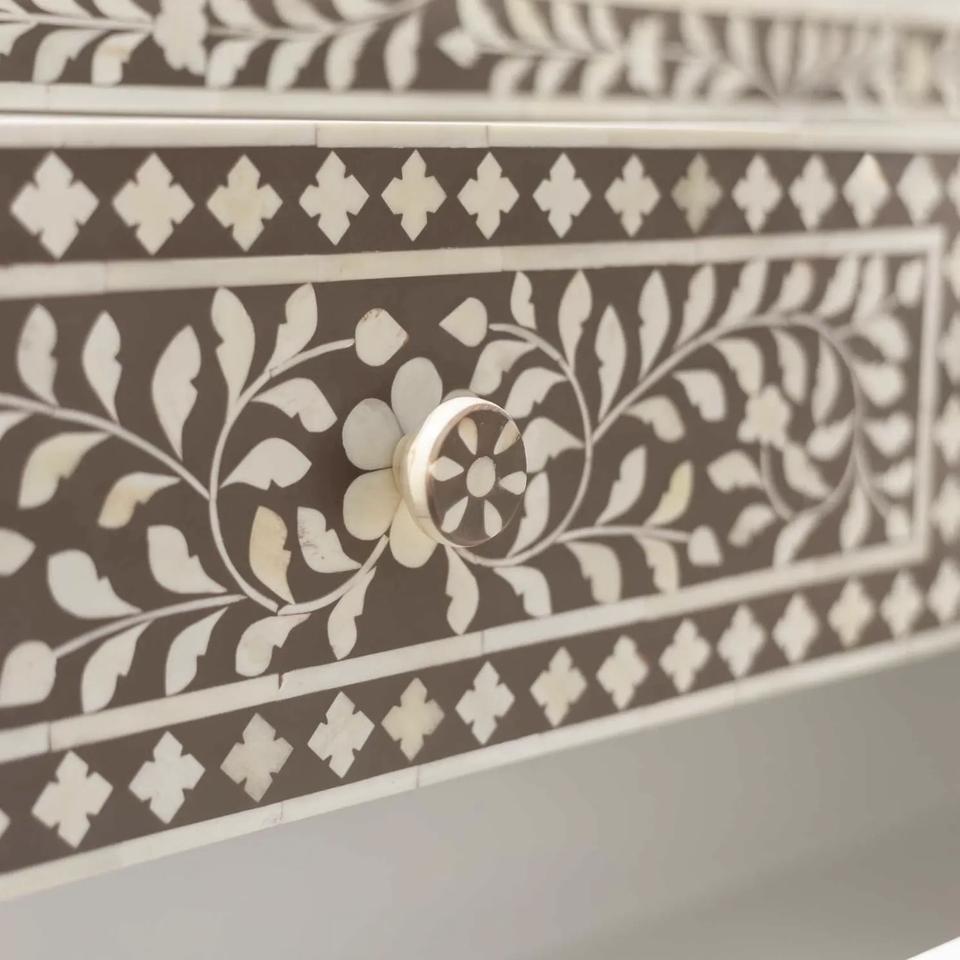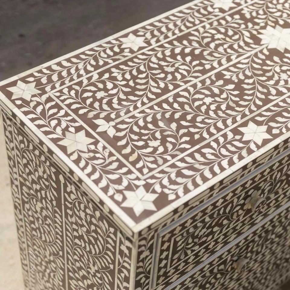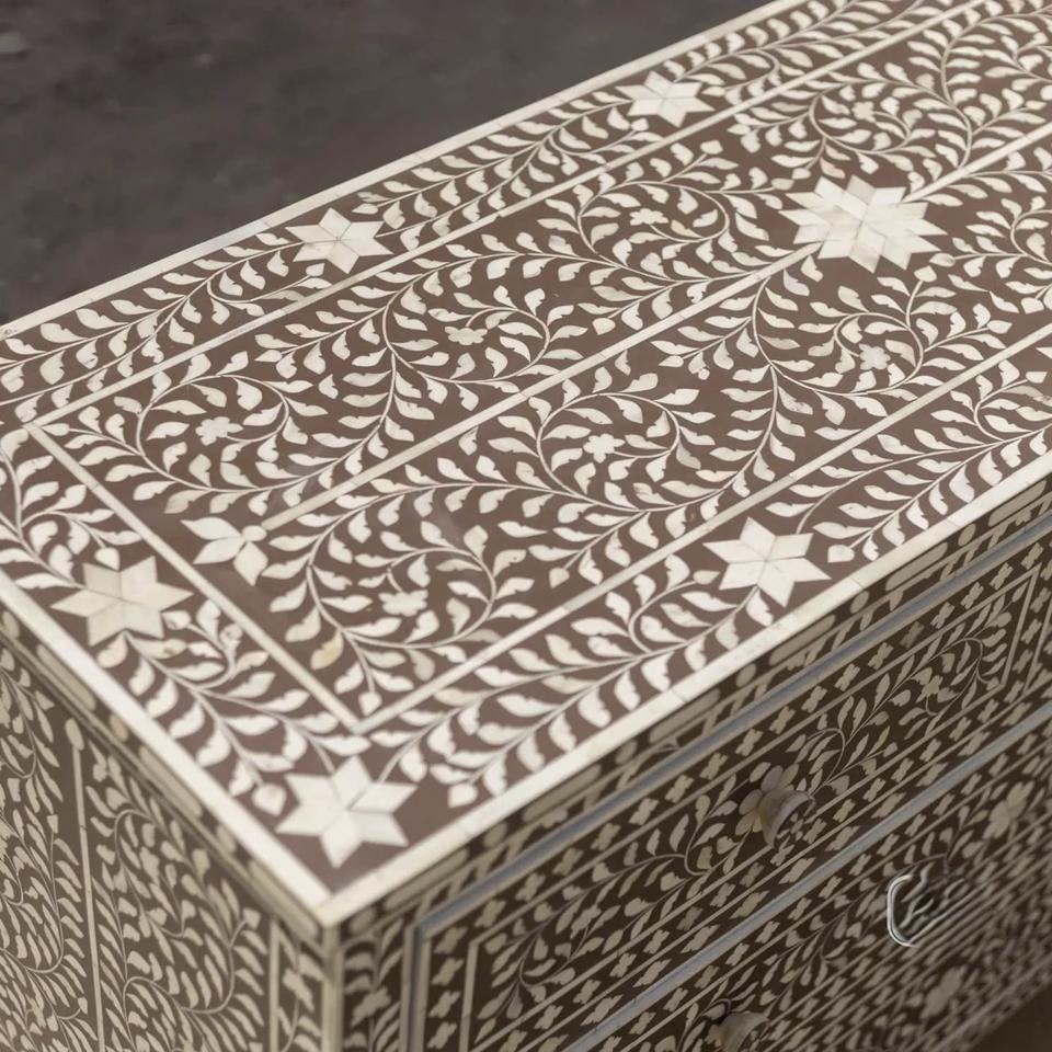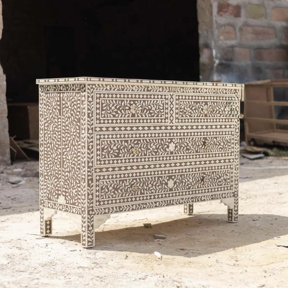 Cajón con Incrustaciones de Hueso de ILAHI, Diseño Moderno con Detalles de Ágata, Mueble Portátil para el Hogar