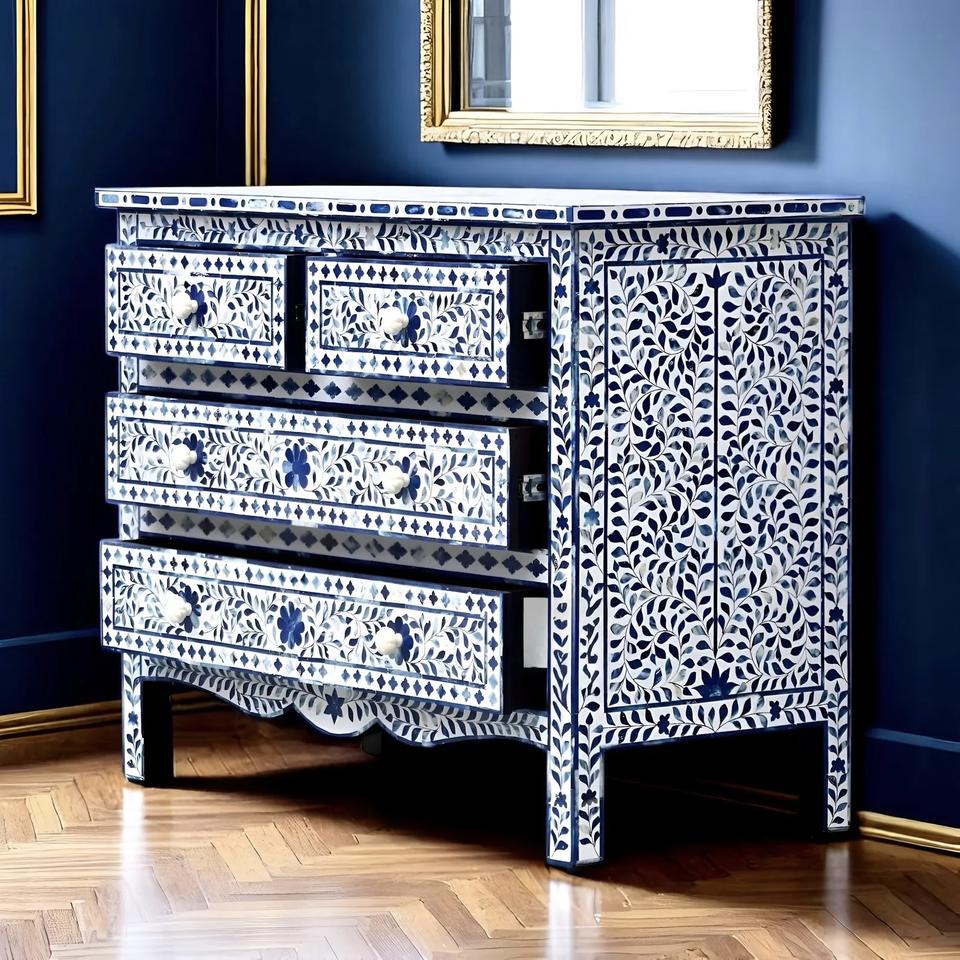 Cajón con Incrustaciones de Hueso de ILAHI, Diseño Moderno con Detalles de Ágata, Mueble Portátil para el Hogar
