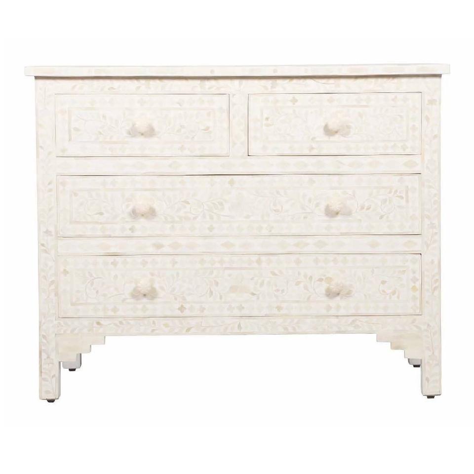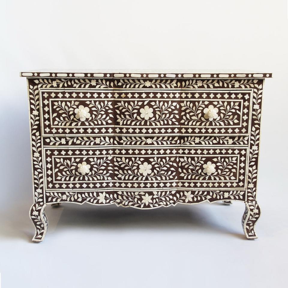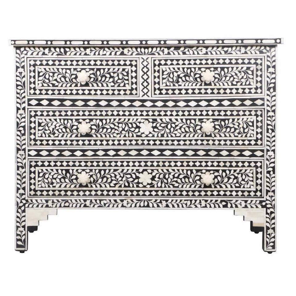 Cajón con Incrustaciones de Hueso de ILAHI, Diseño Moderno con Detalles de Ágata, Mueble Portátil para el Hogar