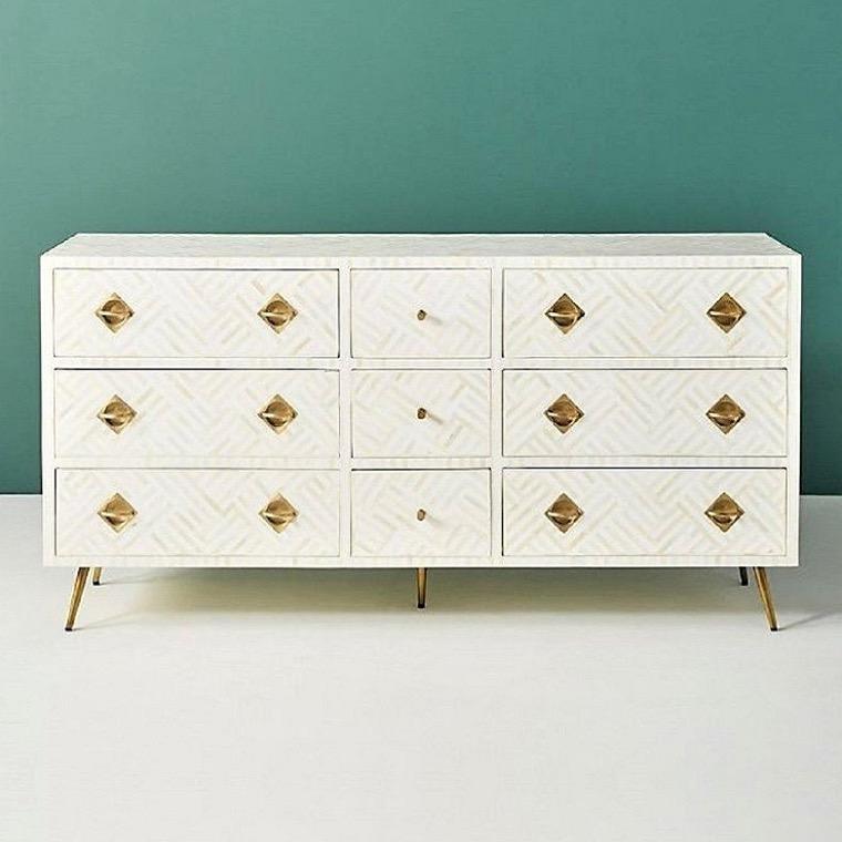 Cajón con Incrustaciones de Hueso de ILAHI, Diseño Moderno con Detalles de Ágata, Mueble Portátil para el Hogar