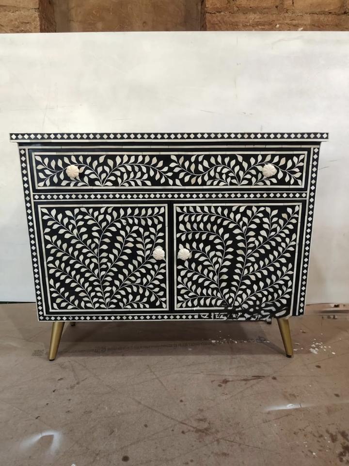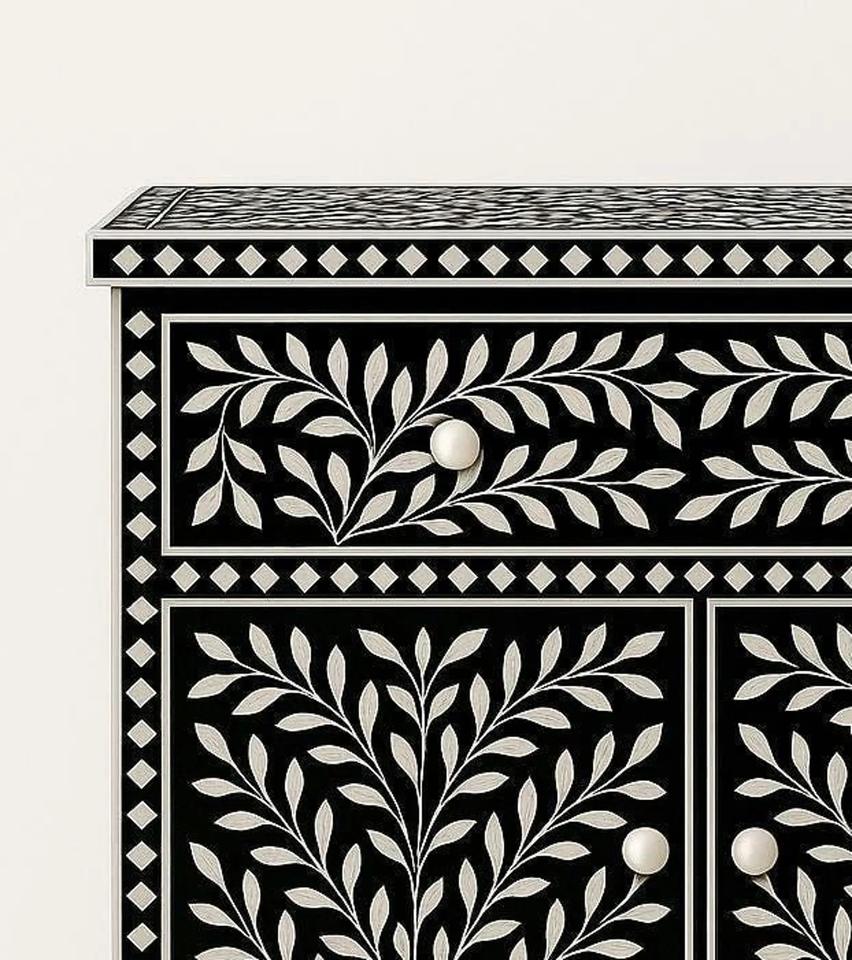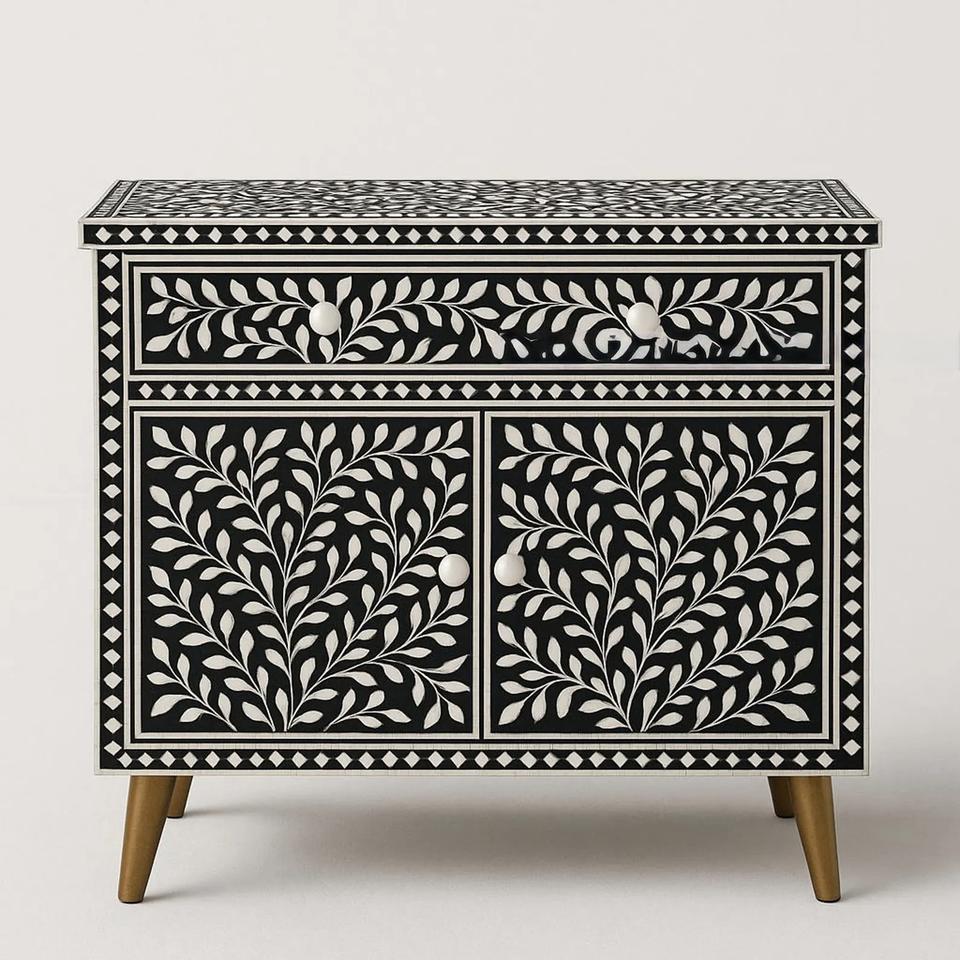Cajón con Incrustaciones de Hueso de ILAHI, Diseño Moderno con Detalles de Ágata, Mueble Portátil para el Hogar
