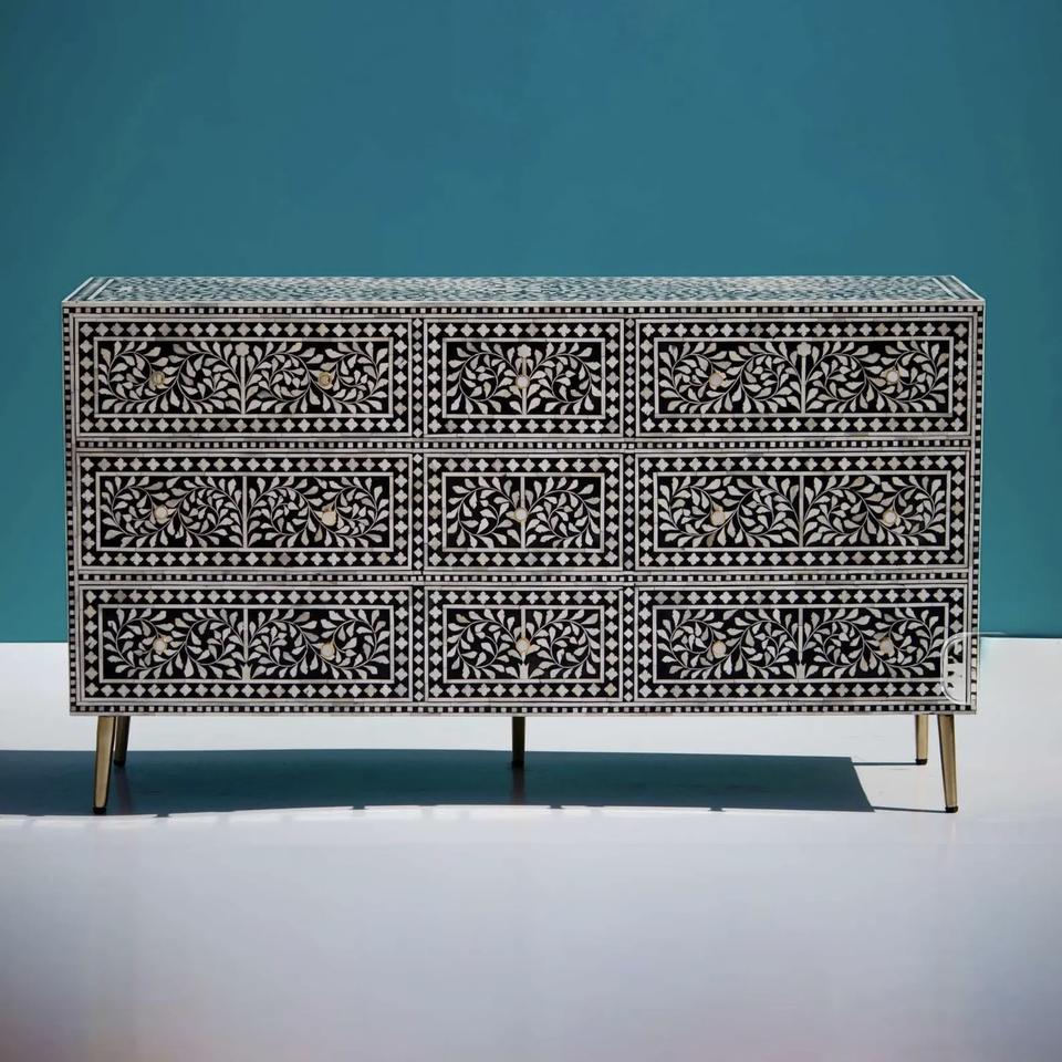 Cajón con Incrustaciones de Hueso de ILAHI, Diseño Moderno con Detalles de Ágata, Mueble Portátil para el Hogar
