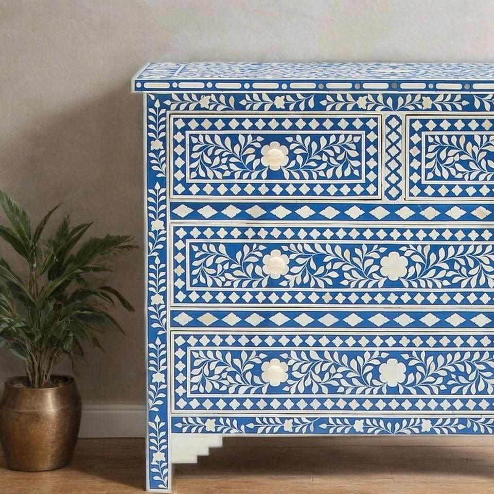 Cajón con Incrustaciones de Hueso de ILAHI, Diseño Moderno con Detalles de Ágata, Mueble Portátil para el Hogar