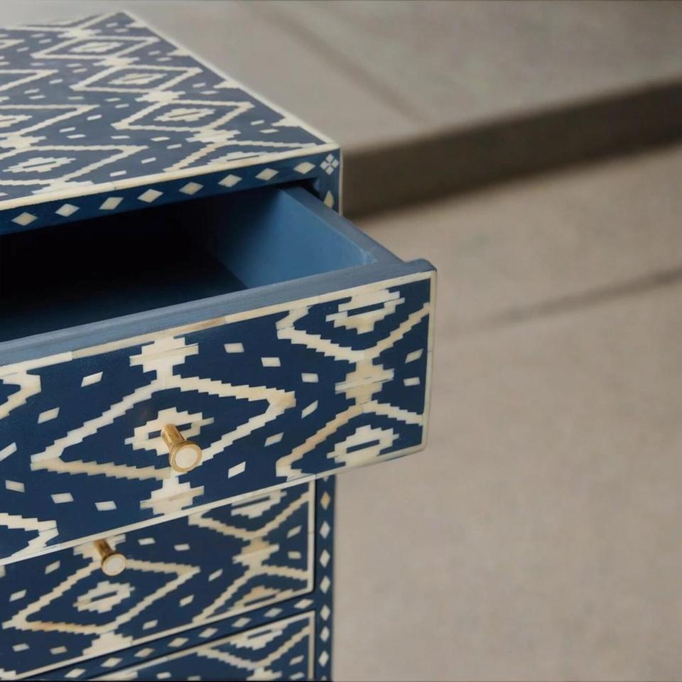 Cajón con Incrustaciones de Hueso de ILAHI, Diseño Moderno con Detalles de Ágata, Mueble Portátil para el Hogar
