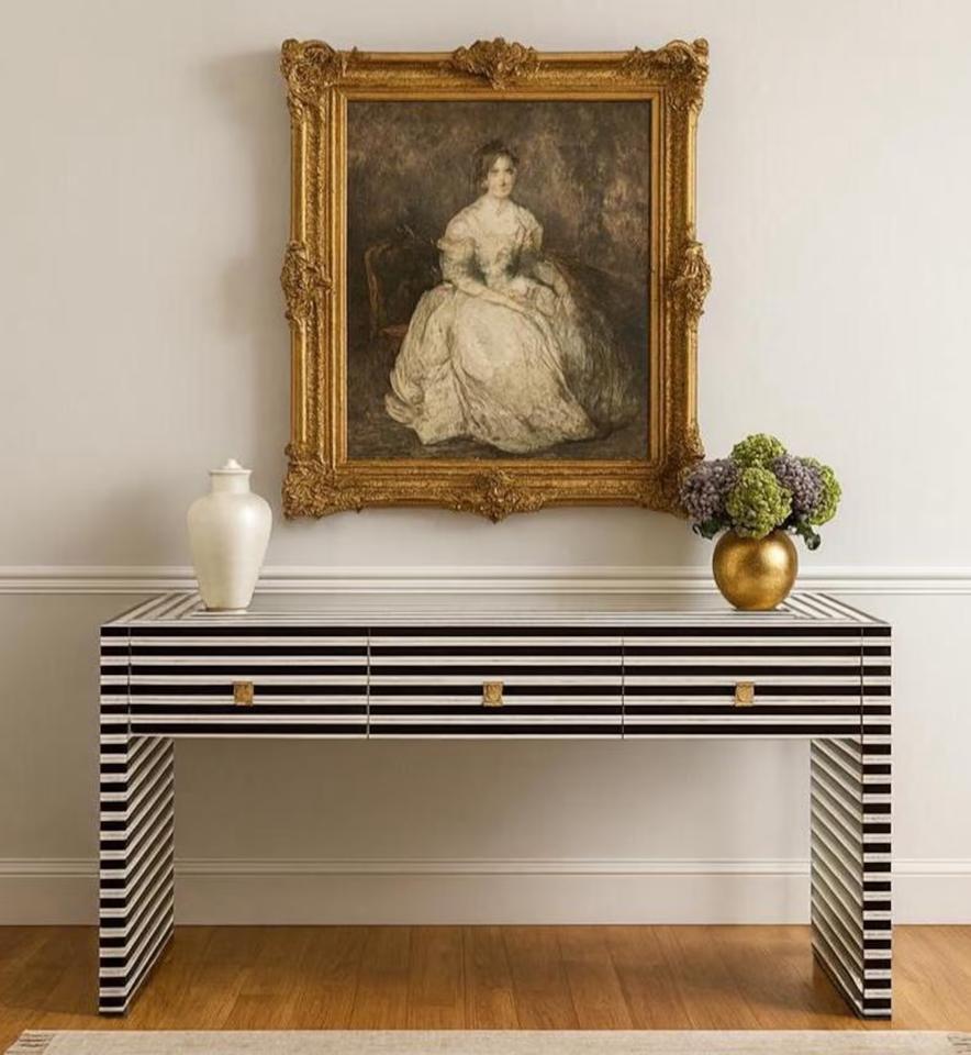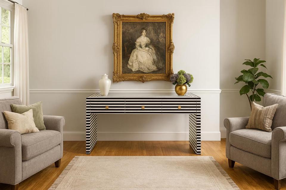 Cajón con Incrustaciones de Hueso de ILAHI, Diseño Moderno con Detalles de Ágata, Mueble Portátil para el Hogar
