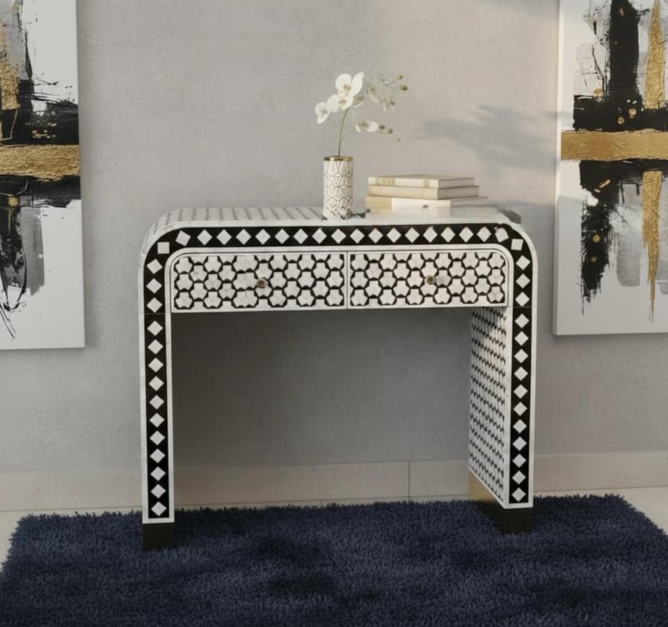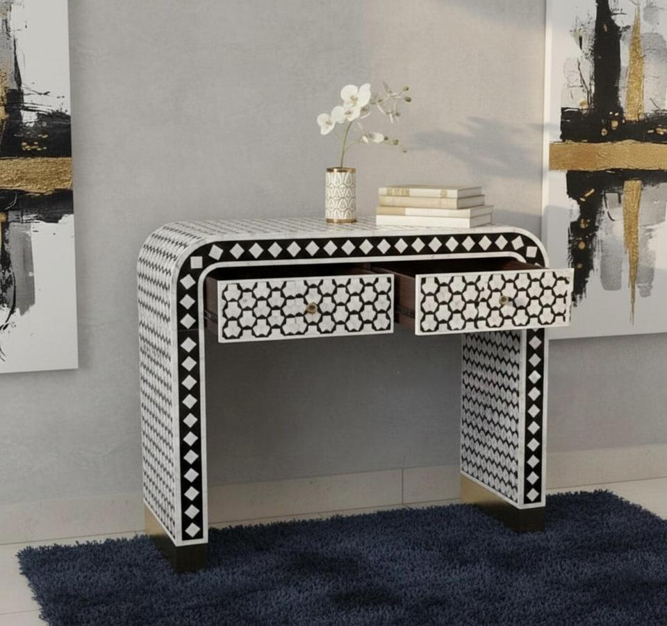 Cajón con Incrustaciones de Hueso de ILAHI, Diseño Moderno con Detalles de Ágata, Mueble Portátil para el Hogar