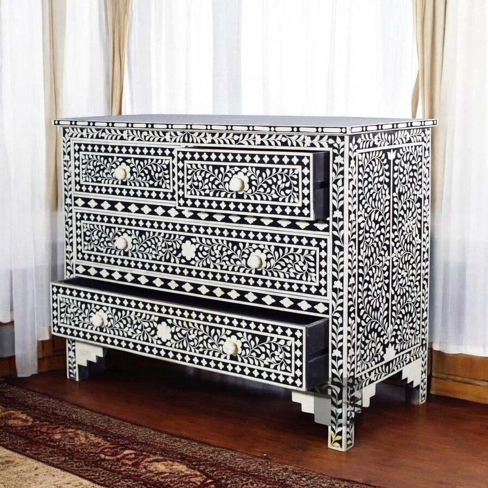 Cajón con Incrustaciones de Hueso de ILAHI, Diseño Moderno con Detalles de Ágata, Mueble Portátil para el Hogar
