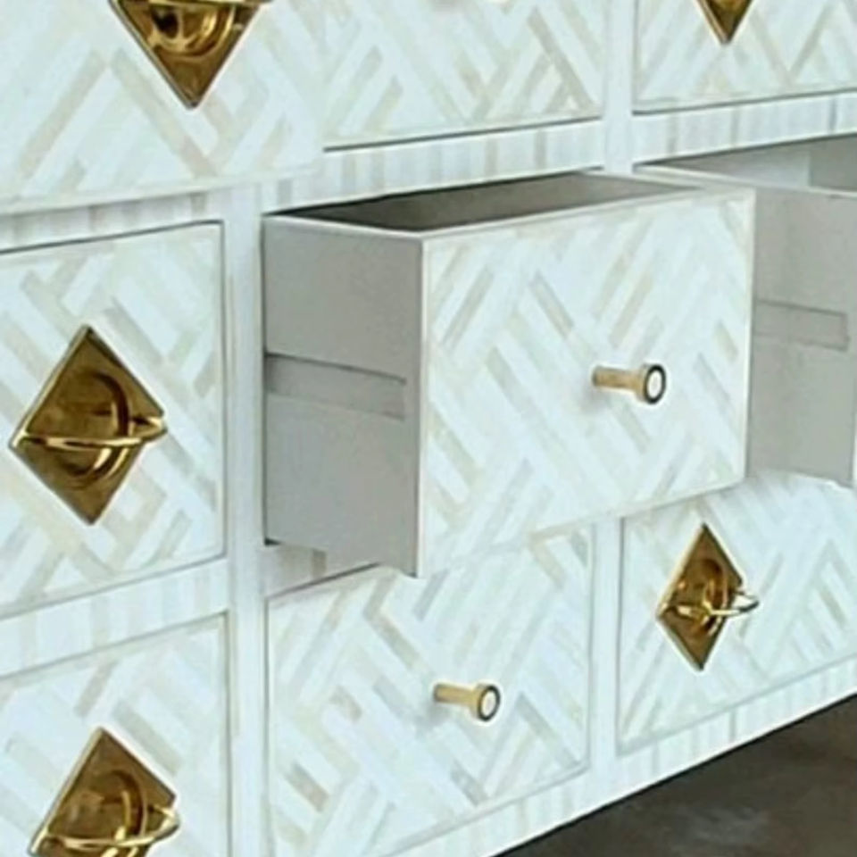 Cajón con Incrustaciones de Hueso de ILAHI, Diseño Moderno con Detalles de Ágata, Mueble Portátil para el Hogar