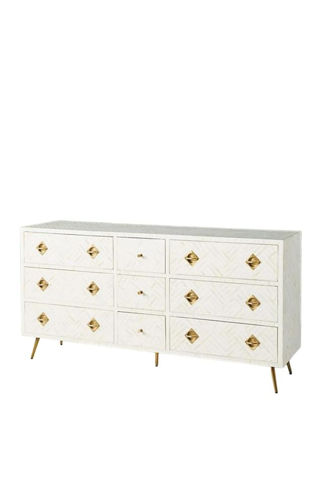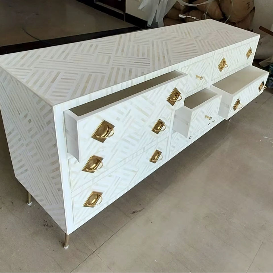 Cajón con Incrustaciones de Hueso de ILAHI, Diseño Moderno con Detalles de Ágata, Mueble Portátil para el Hogar