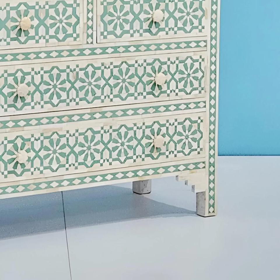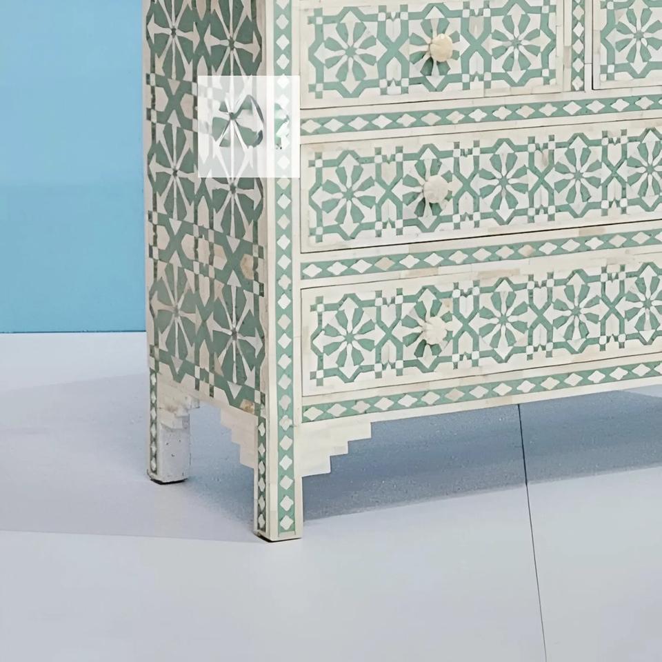Cajón con Incrustaciones de Hueso de ILAHI, Diseño Moderno con Detalles de Ágata, Mueble Portátil para el Hogar
