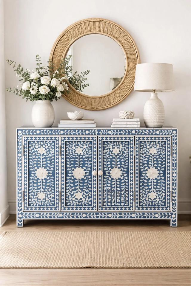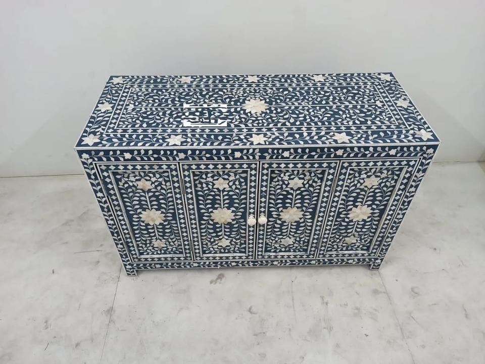 Cajón con Incrustaciones de Hueso de ILAHI, Diseño Moderno con Detalles de Ágata, Mueble Portátil para el Hogar
