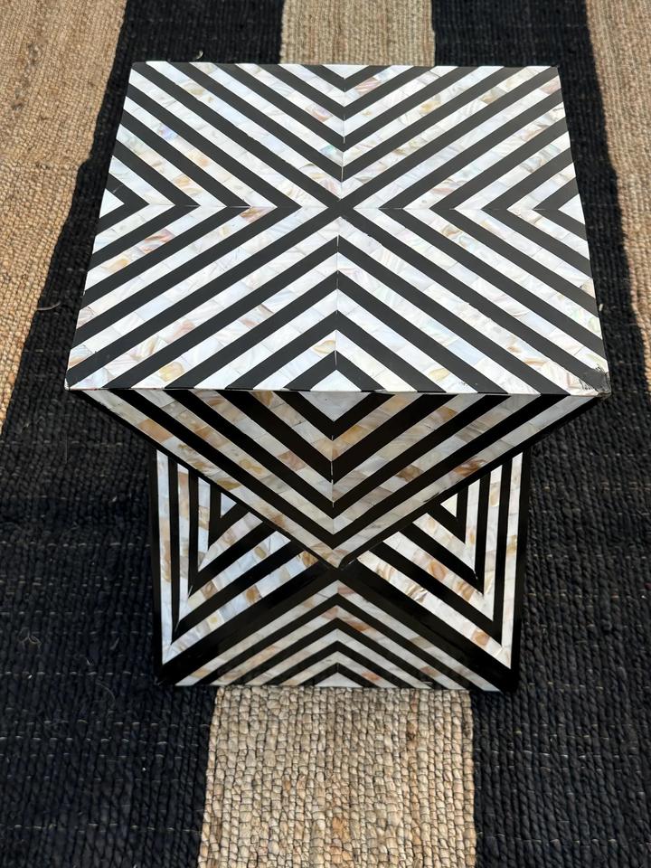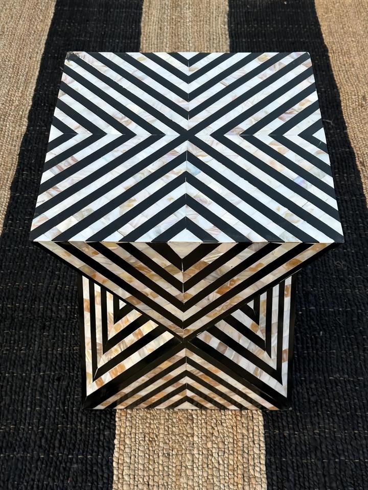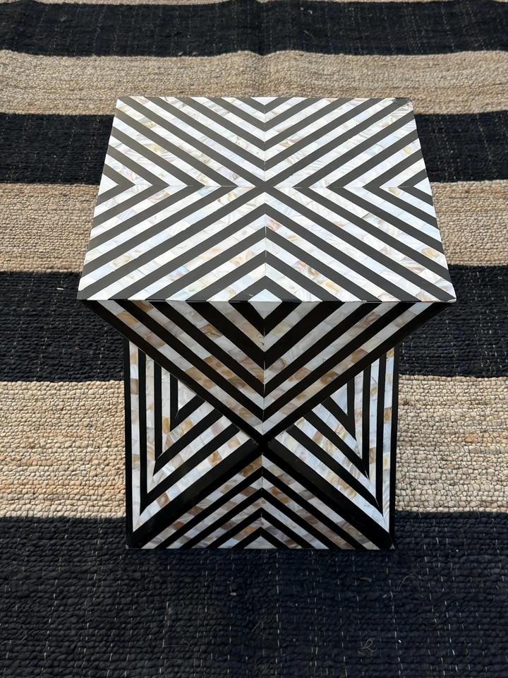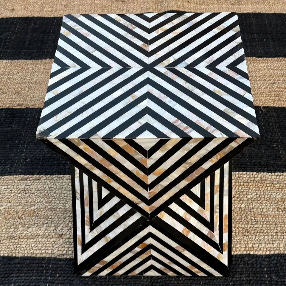 Mesa de Cajones con Incrustaciones de Hueso de ILAHI, con Base de Latón, Diseño Moderno, Detalles de Ágata, Almacenamiento de Tres Niveles, Mueble Portátil para el Hogar