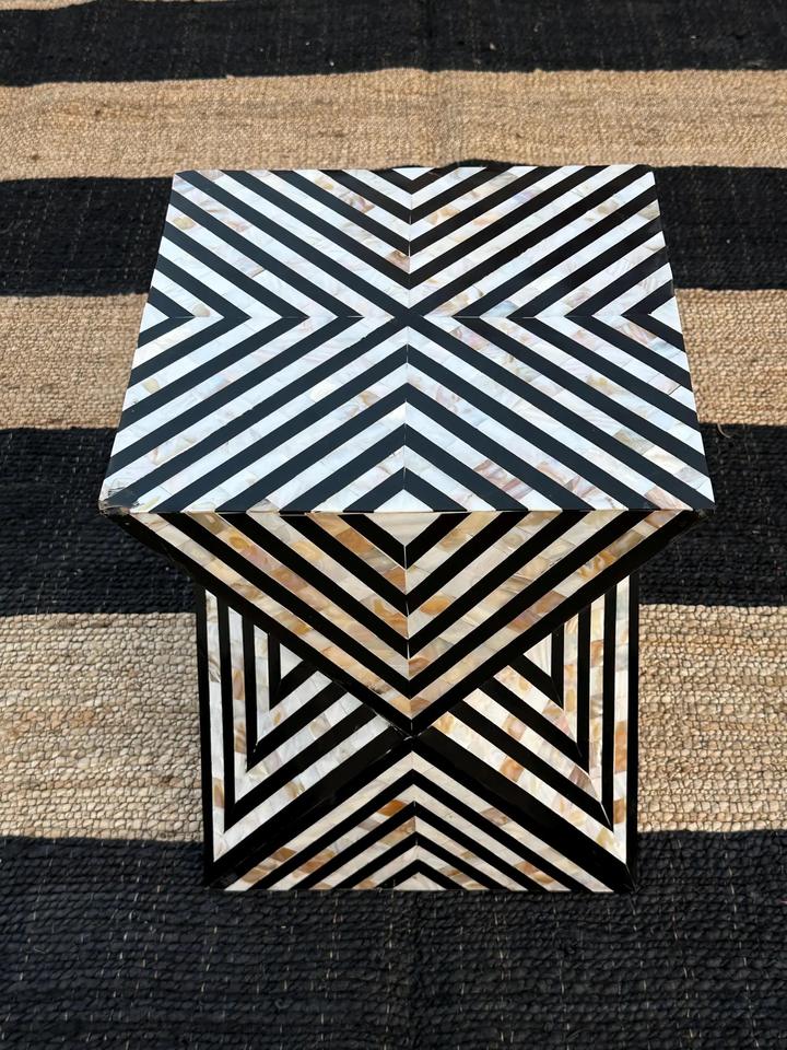 Mesa de Cajones con Incrustaciones de Hueso de ILAHI, con Base de Latón, Diseño Moderno, Detalles de Ágata, Almacenamiento de Tres Niveles, Mueble Portátil para el Hogar