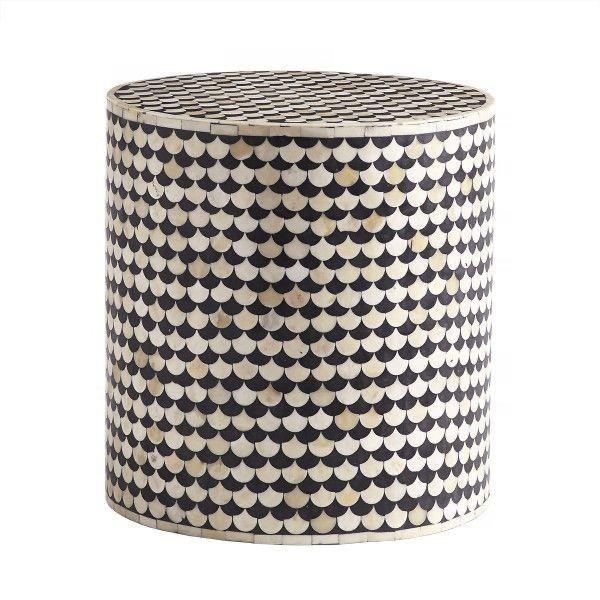 Mesa de Cajones con Incrustaciones de Hueso de ILAHI, Diseño Moderno con Detalles de Ágata, Almacenamiento de Tres Niveles, Mueble Portátil para el Hogar