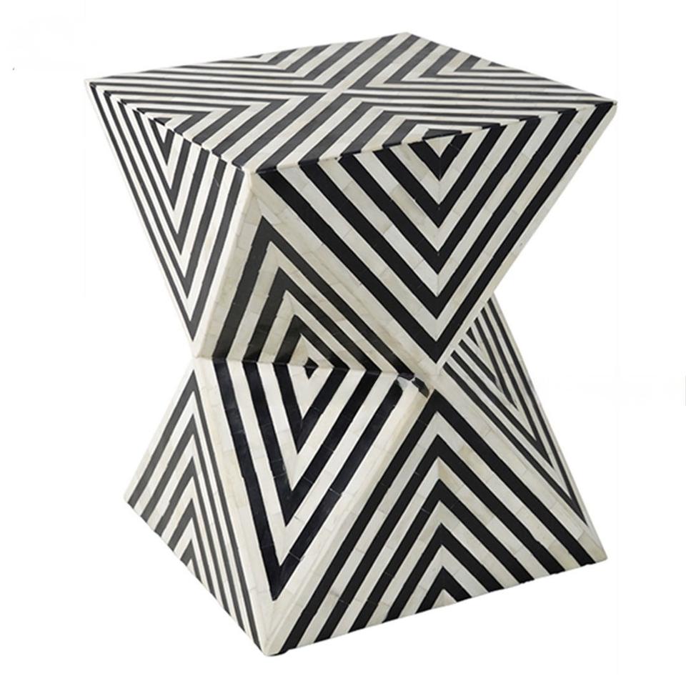 Mesa de Cajones con Incrustaciones de Hueso de ILAHI, Diseño Moderno con Detalles de Ágata, Almacenamiento de Tres Niveles, Mueble Portátil para el Hogar