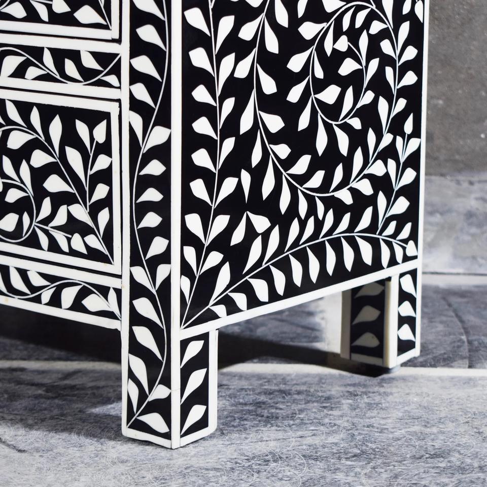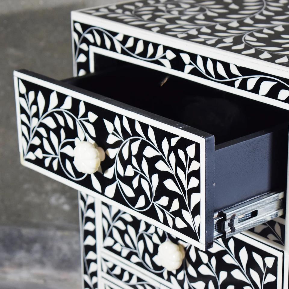 Mesa de Cajones con Incrustaciones de Hueso de ILAHI, Diseño Moderno con Detalles de Ágata, Almacenamiento de Tres Niveles, Mueble Portátil para el Hogar