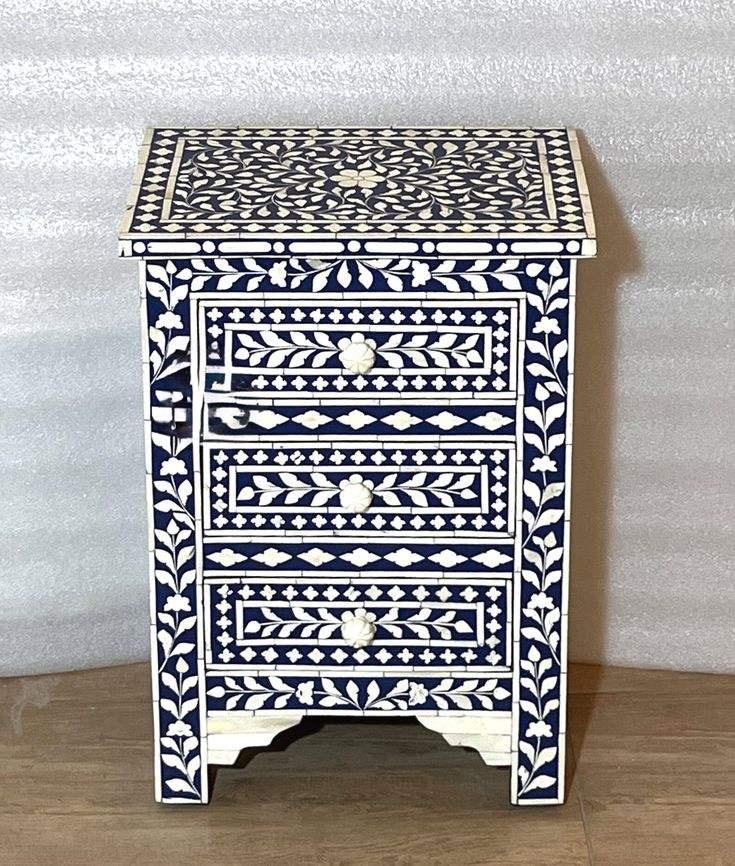 Mesa de Cajones con Incrustaciones de Hueso de ILAHI, Diseño Moderno con Detalles de Ágata, Almacenamiento de Tres Niveles, Mueble Portátil para el Hogar