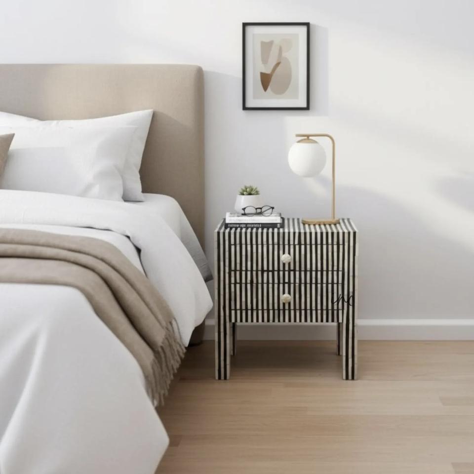 Mesa de Cajones con Incrustaciones de Hueso de ILAHI, Diseño Moderno con Detalles de Ágata, Almacenamiento de Tres Niveles, Mueble Portátil para el Hogar