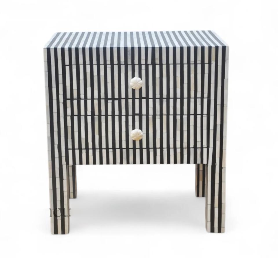 Mesa de Cajones con Incrustaciones de Hueso de ILAHI, Diseño Moderno con Detalles de Ágata, Almacenamiento de Tres Niveles, Mueble Portátil para el Hogar