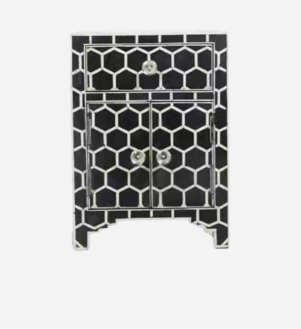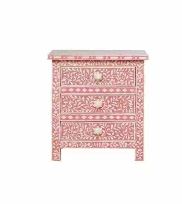 Mesa de Cajones con Incrustaciones de Hueso de ILAHI, Diseño Moderno con Detalles de Ágata, Almacenamiento de Tres Niveles, Mueble Portátil para el Hogar