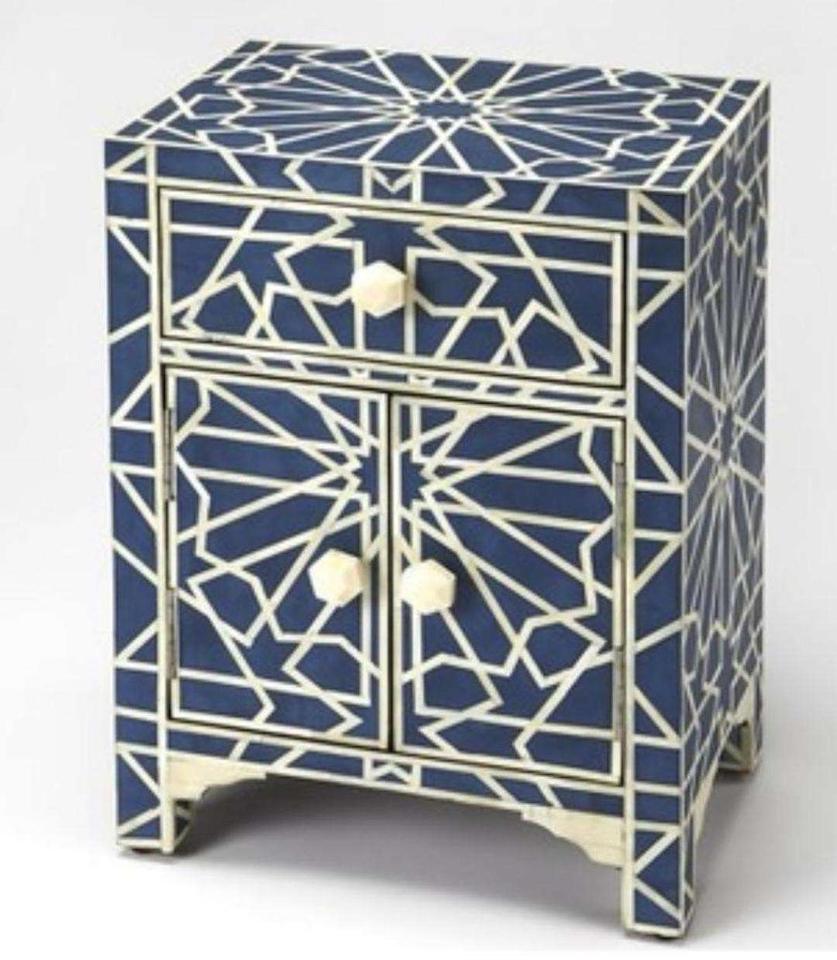 Mesa de Cajones con Incrustaciones de Hueso de ILAHI, Diseño Moderno con Detalles de Ágata, Almacenamiento de Tres Niveles, Mueble Portátil para el Hogar