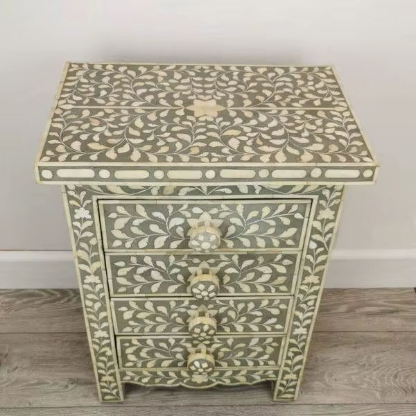 Mesa de Cajones con Incrustaciones de Hueso de ILAHI, Diseño Moderno con Detalles de Ágata, Almacenamiento de Tres Niveles, Mueble Portátil para el Hogar