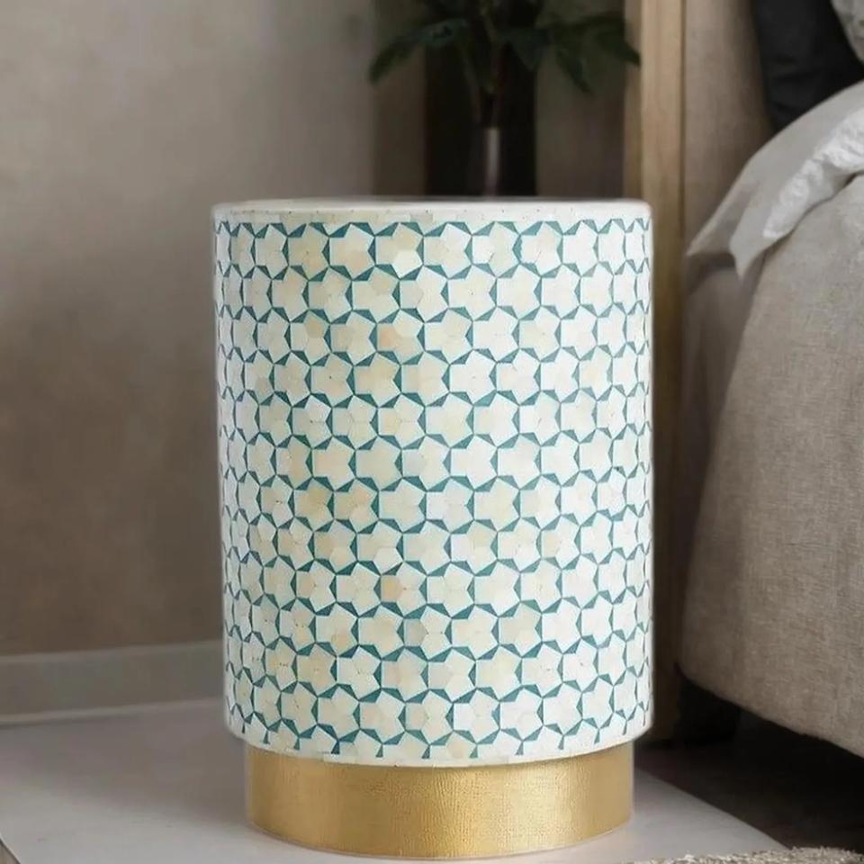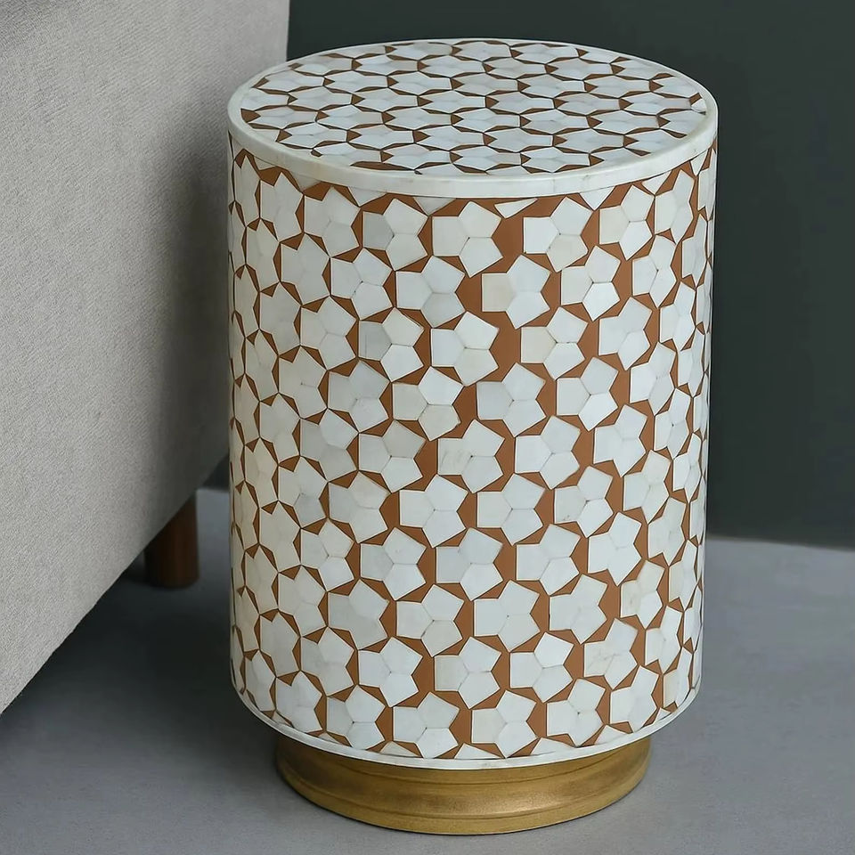 Mesa de Cajones con Incrustaciones de Hueso de ILAHI, Diseño Moderno con Detalles de Ágata, Almacenamiento de Tres Niveles, Mueble Portátil para el Hogar