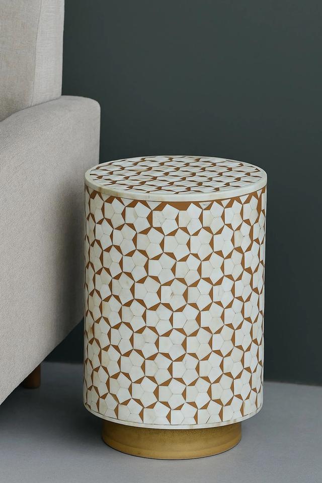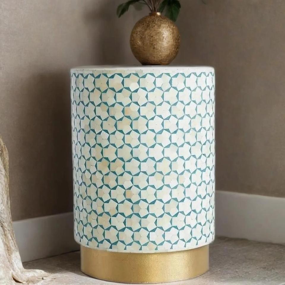 Mesa de Cajones con Incrustaciones de Hueso de ILAHI, Diseño Moderno con Detalles de Ágata, Almacenamiento de Tres Niveles, Mueble Portátil para el Hogar
