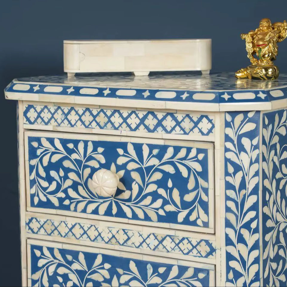 Mesa de Cajones con Incrustaciones de Hueso de ILAHI, Diseño Moderno con Detalles de Ágata, Almacenamiento de Tres Niveles, Mueble Portátil para el Hogar