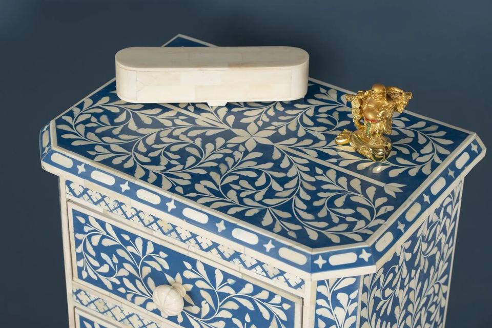 Mesa de Cajones con Incrustaciones de Hueso de ILAHI, Diseño Moderno con Detalles de Ágata, Almacenamiento de Tres Niveles, Mueble Portátil para el Hogar