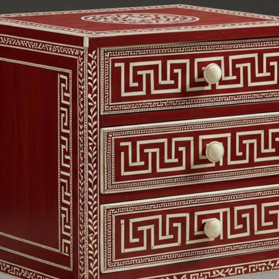 Mesa de Cajones con Incrustaciones de Hueso de ILAHI, Diseño Moderno con Detalles de Ágata, Almacenamiento de Tres Niveles, Mueble Portátil para el Hogar