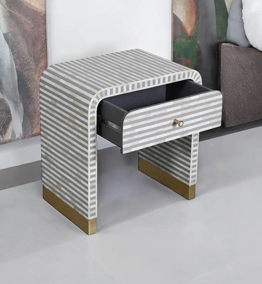 Mesa de Cajones con Incrustaciones de Hueso de ILAHI, Diseño Moderno con Detalles de Ágata, Almacenamiento de Tres Niveles, Mueble Portátil para el Hogar
