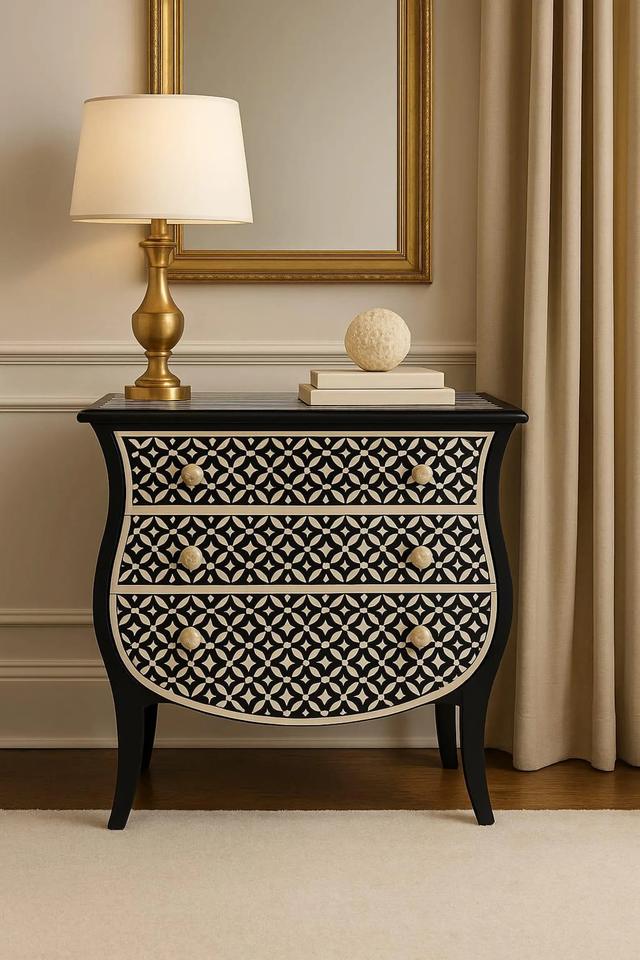 Mesa de Cajones con Incrustaciones de Hueso de ILAHI, Diseño Moderno con Detalles de Ágata, Almacenamiento de Tres Niveles, Mueble Portátil para el Hogar