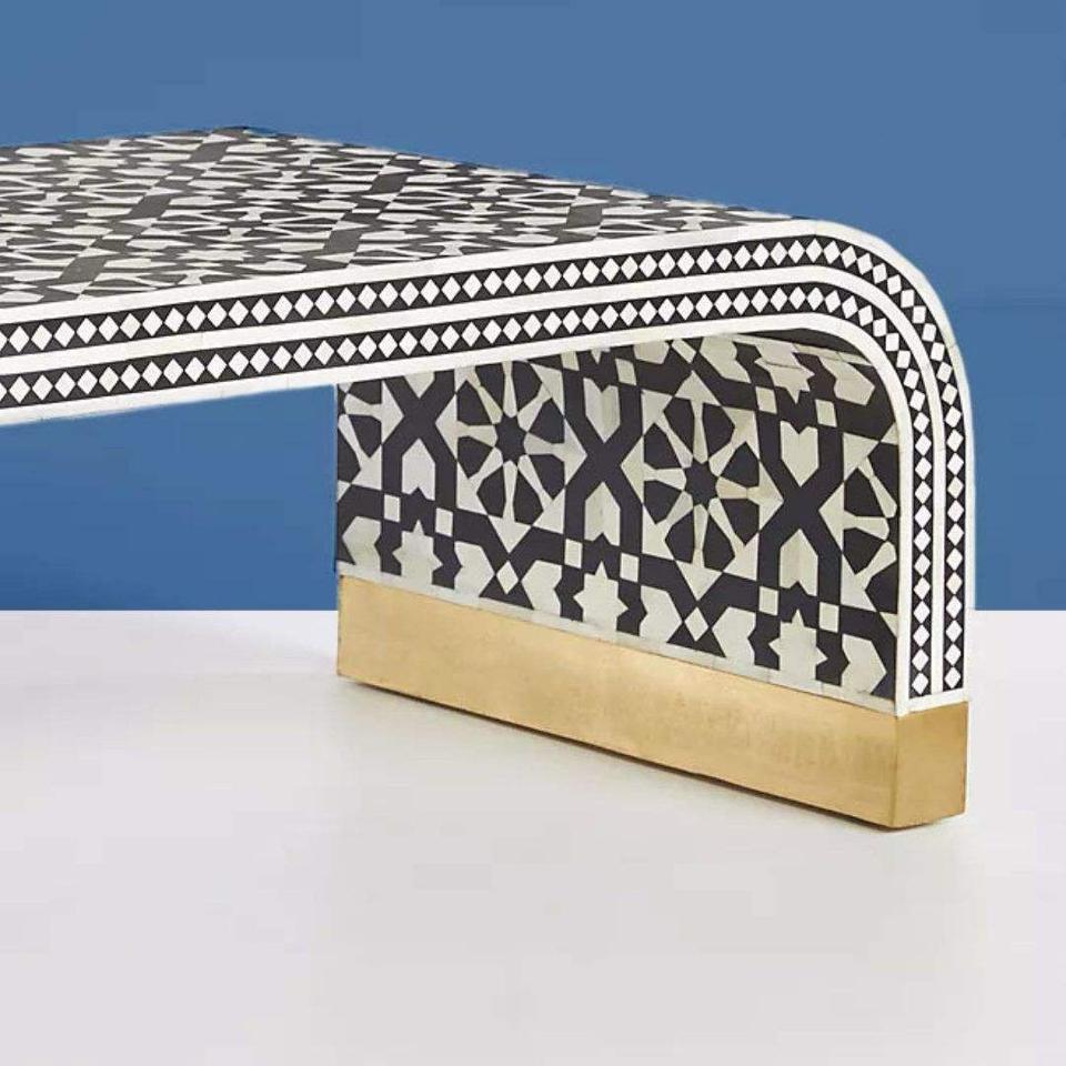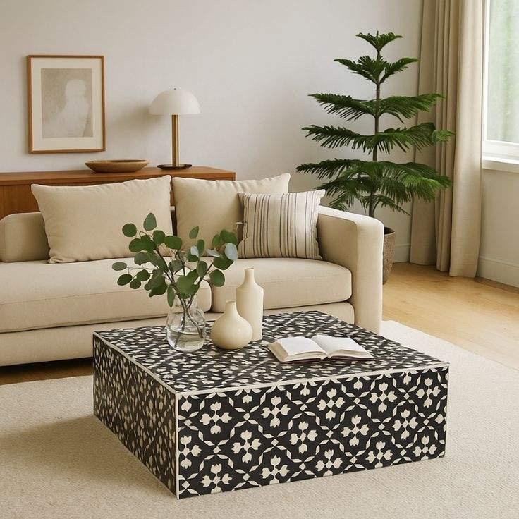 Mesa con Incrustaciones de Hueso de ILAHI, Diseño Moderno con Detalles de Ágata, Almacenamiento Portátil, Muebles para el Hogar