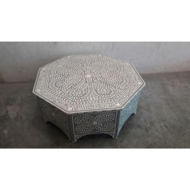 Mesa con Incrustaciones de Hueso de ILAHI, Diseño Moderno con Detalles de Ágata, Almacenamiento Portátil, Muebles para el Hogar