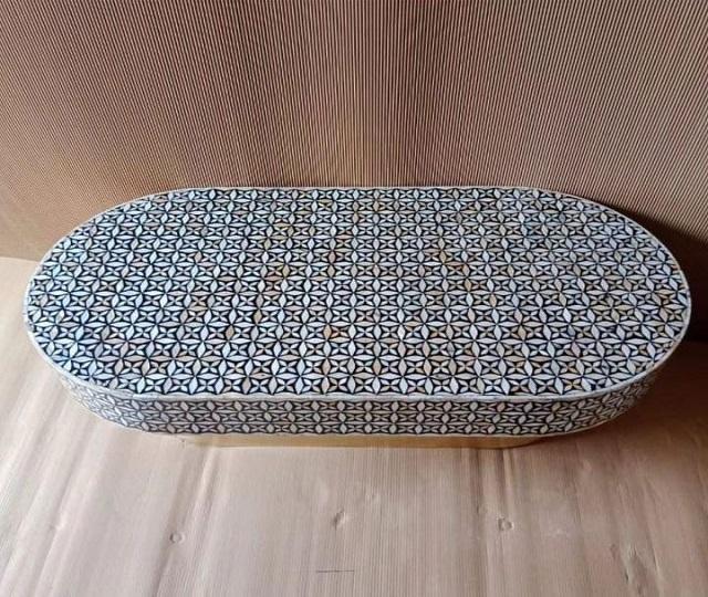 Mesa con Incrustaciones de Hueso de ILAHI, Diseño Moderno con Detalles de Ágata, Almacenamiento Portátil, Muebles para el Hogar