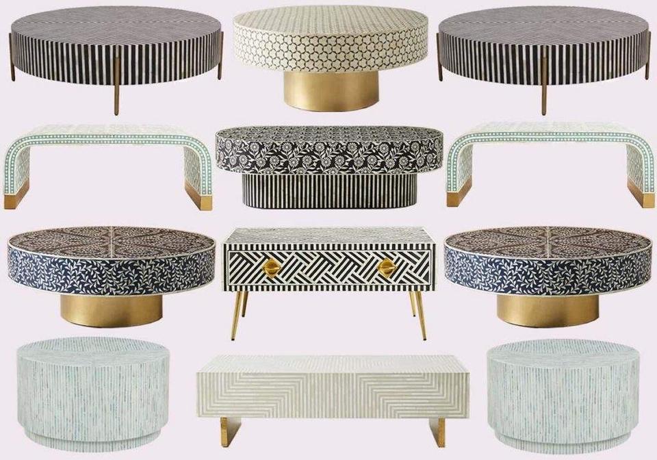 Mesa con Incrustaciones de Hueso de ILAHI, Diseño Moderno con Detalles de Ágata, Almacenamiento Portátil, Muebles para el Hogar