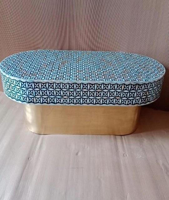 Mesa con Incrustaciones de Hueso de ILAHI, Diseño Moderno con Detalles de Ágata, Almacenamiento Portátil, Muebles para el Hogar