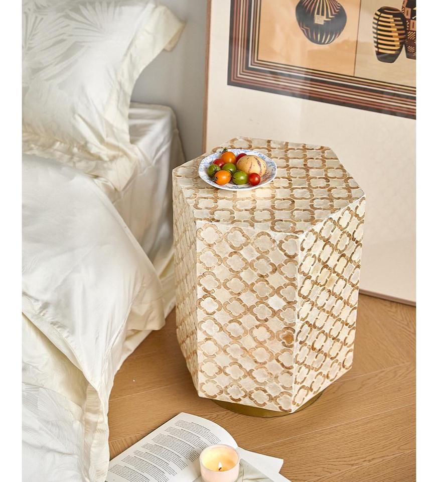 Mesa con Incrustaciones de Hueso de ILAHI, Diseño Moderno con Detalles de Ágata, Almacenamiento Portátil, Muebles para el Hogar