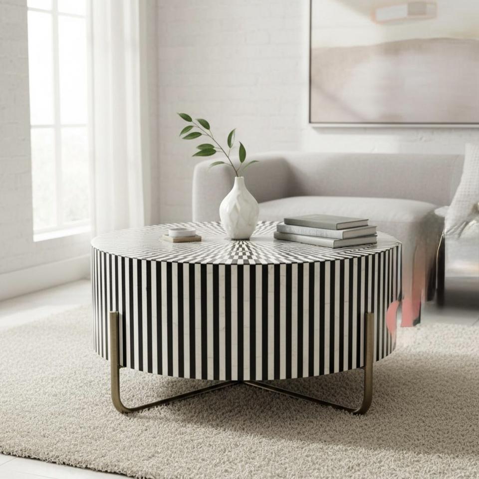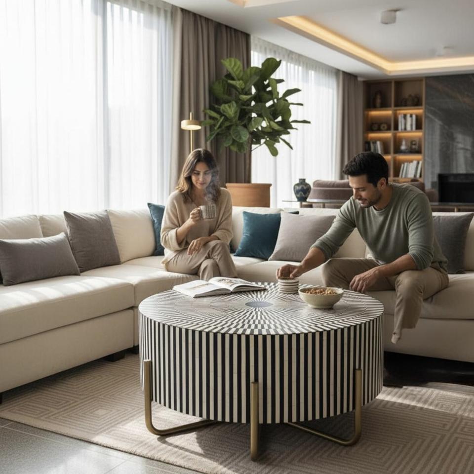 Mesa con Incrustaciones de Hueso de ILAHI, Diseño Moderno con Detalles de Ágata, Almacenamiento Portátil, Muebles para el Hogar