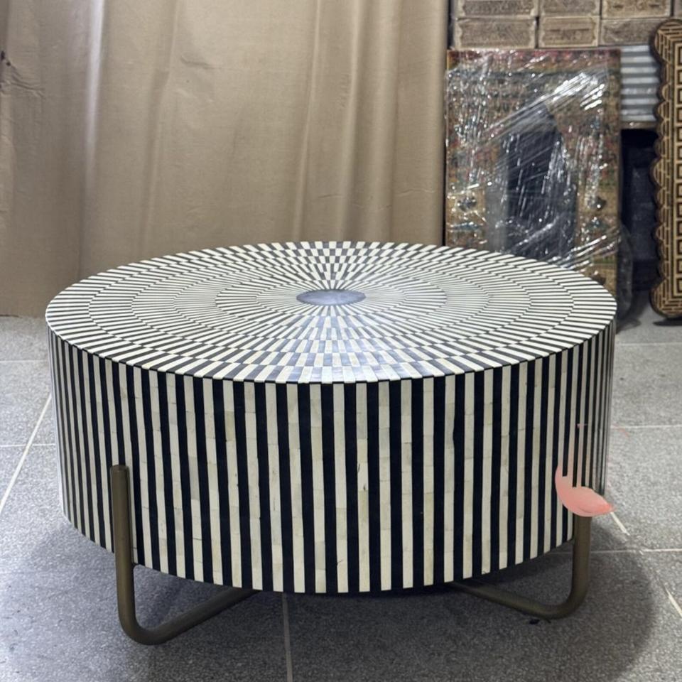 Mesa con Incrustaciones de Hueso de ILAHI, Diseño Moderno con Detalles de Ágata, Almacenamiento Portátil, Muebles para el Hogar