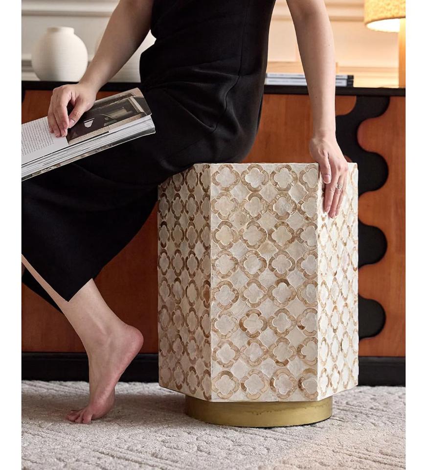 Mesa con Incrustaciones de Hueso de ILAHI, Diseño Moderno con Detalles de Ágata, Almacenamiento Portátil, Muebles para el Hogar