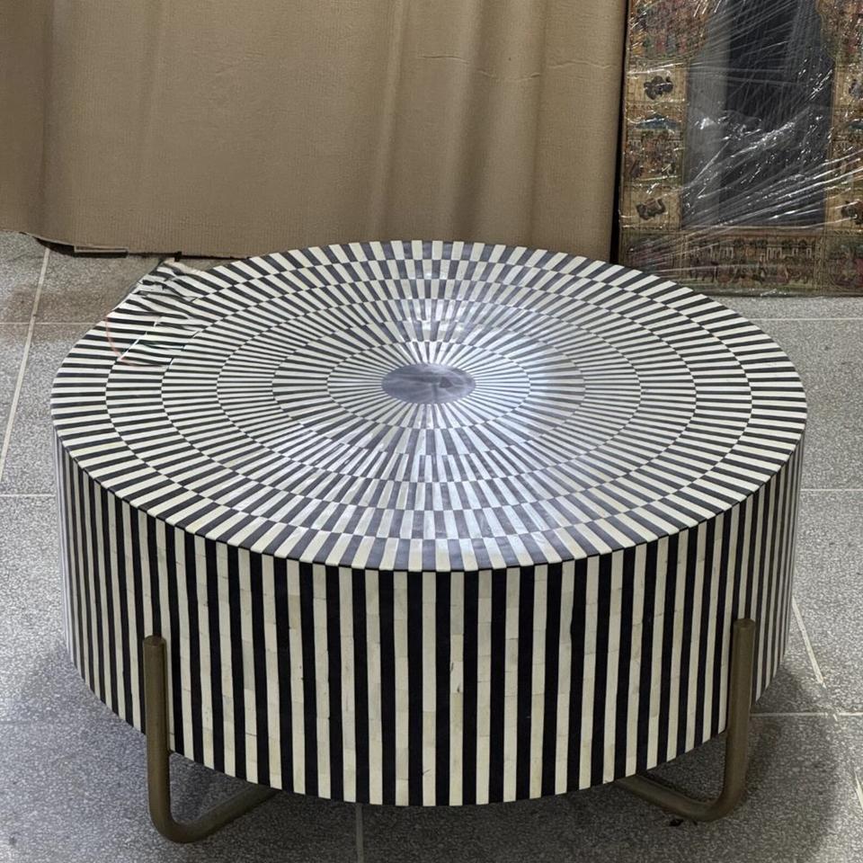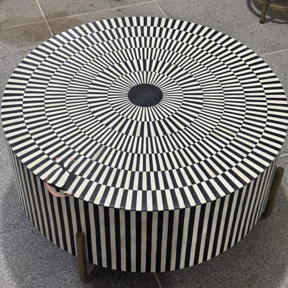 Mesa con Incrustaciones de Hueso de ILAHI, Diseño Moderno con Detalles de Ágata, Almacenamiento Portátil, Muebles para el Hogar
