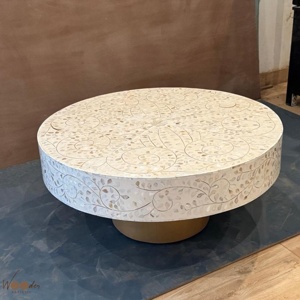 Mesa con Incrustaciones de Hueso de ILAHI, Diseño Moderno con Detalles de Ágata, Almacenamiento Portátil, Muebles para el Hogar