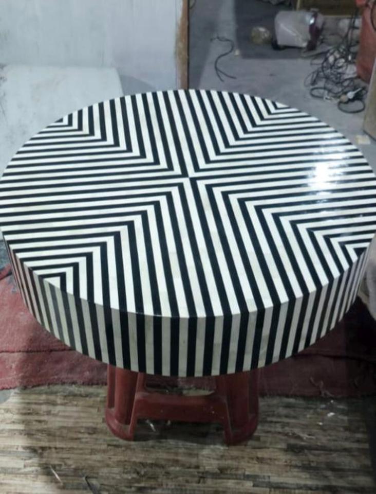 Mesa con Incrustaciones de Hueso de ILAHI, Diseño Moderno con Detalles de Ágata, Almacenamiento Portátil, Muebles para el Hogar